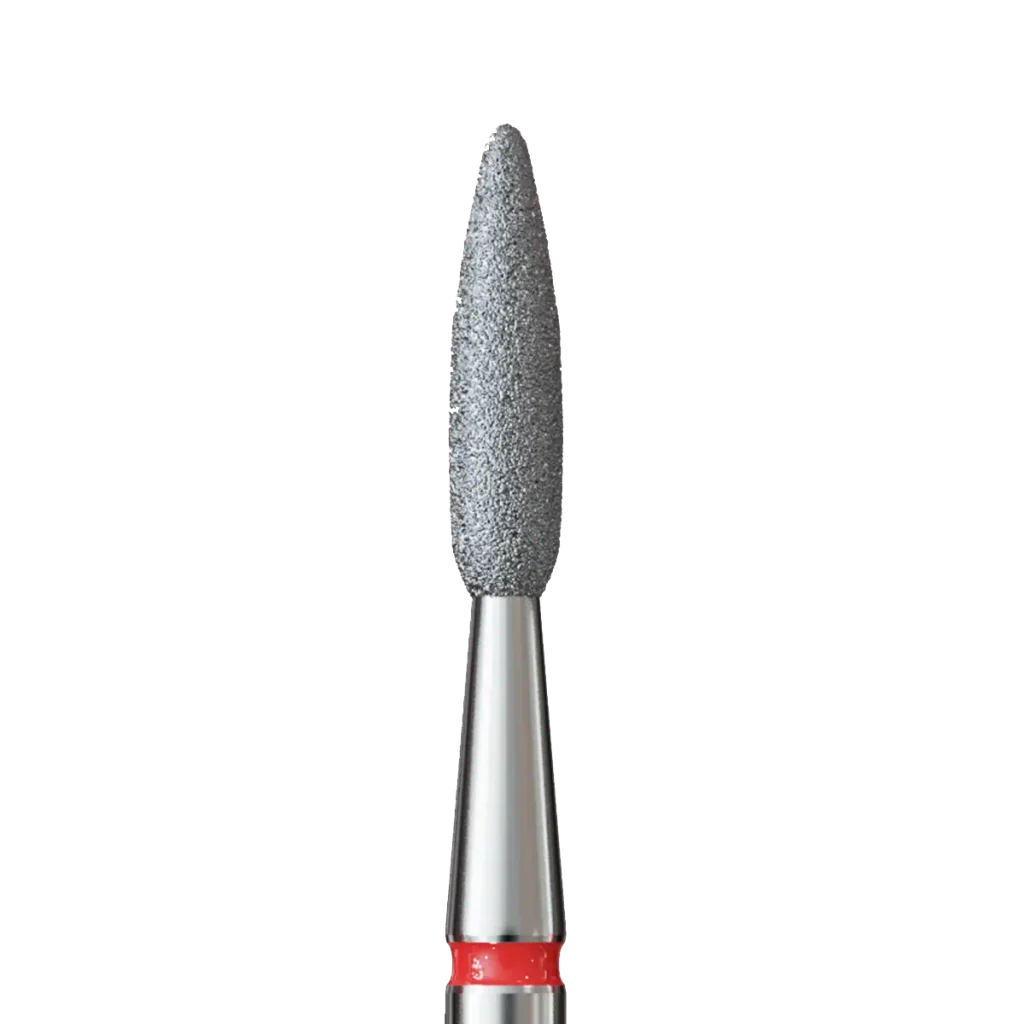 Diamantni brusni nastavek IQNails v obliki dolgega plamena je zasnovan za dvigovanje obnohtne kožice, odstranjevanje epitelija in izravnavanje robov nohta.