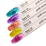 8. Nanesite sloj gradilnega gela. Ne hitite, pustite, da se cvetovi vpijejo v gel. Pri uporabi spodnjih šablon za ustvarjanje loka, lahko gel malo pritisnete 7 - 10 s. Zatem polimerizirajte 120 s (LED).