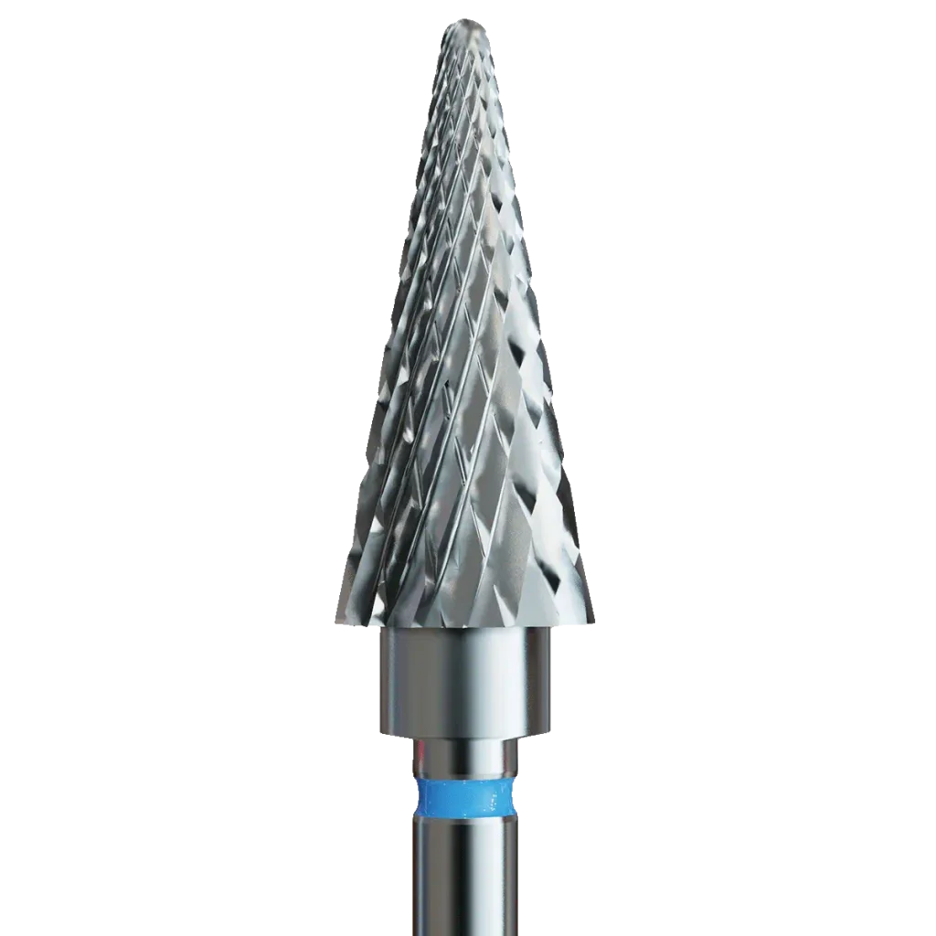 Karbidni brusni nastavek IQNails v obliki smrečke s standardnimi križnimi rezi je idealen za varno odstranjevanje gel laka in gela.