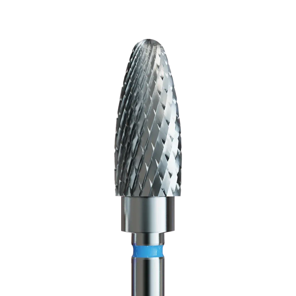 Karbidni brusni nastavek IQNails v obliki stožca s standardnimi križnimi rezi je idealen za varno odstranjevanje gel laka in gela.
