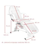 Poseben mehanizem omogoča postopno prilagajanje naklona naslonjala za noge in hrbet. S pomočjo ročice lahko prosto nastavite položaj sedeža. To omogoča optimalno prilagoditev individualnim potrebam, zagotavlja pravilno in udobno izvajanje tretmajev ter visoko raven udobja pri uporabi. Stol se lahko raztegne v ležeč položaj, kar znatno poveča njegovo funkcionalnost. To omogoča prosto izvajanje različnih vrst tretmajev, vključno s kozmetičnimi, fizioterapevtskimi in tetovažnimi postopki.